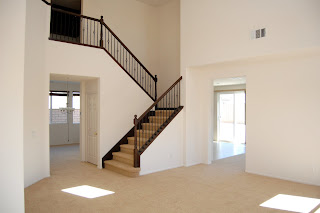 Family Room- taken from the kitchen-- (prewired for surround sound in case you forgot- and are a boy and care) with a ridiculously small mantel for the too big tile of the fireplace. I can't BELIEVE they won't fix that for us but we're on our own. Anyone know how much mantels are? Or if I'm spelling mantel right?